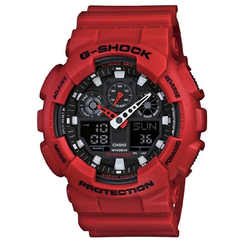 - Red resin band analog, Digital watch with black face, X-Large case, Shock resistant, 200M Water Resistant, Anti-Magnetic Structure, Hourly Time Signal, Auto-Calendar (pre-programmed until the year 2099)